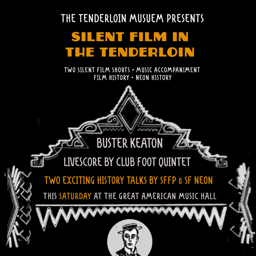 A rare chance to hear exciting history talks and see the streets (and cable cars) of 1922 San Francisco in the short silent film Day Dreams. Directed by and starring the maestro of mirth Buster Keaton (plus a bonus short silent film by Keaton: One Week). Step back into the silent‑film era when the Tenderloin anchored San Francisco’s cinema culture. Experience Richard Marriott’s Club Foot Quintet performing original scores to Buster Keaton’s One Week (1920) and Day Dreams (1922)—the latter a filmed-in-SF classic and featuring the premiere of Marriott’s freshly composed live score. Enjoy expert presentations including the Tenderloin’s early film exchanges from Kathy Rose O’Regan of San Francisco Film Preserve. Al Barna and Randall An Homan of SF Neon explore the intersection between the invention of neon, silents, and talkies and a look at the heyday of movie palaces on Market Street with film historian Jim Van Buskirk. Co-presented by Tenderloin Museum and San Francisco Film Preserve.
